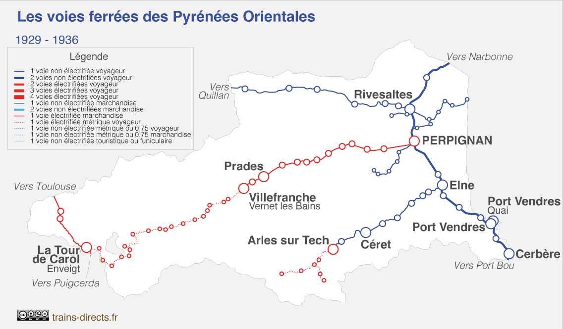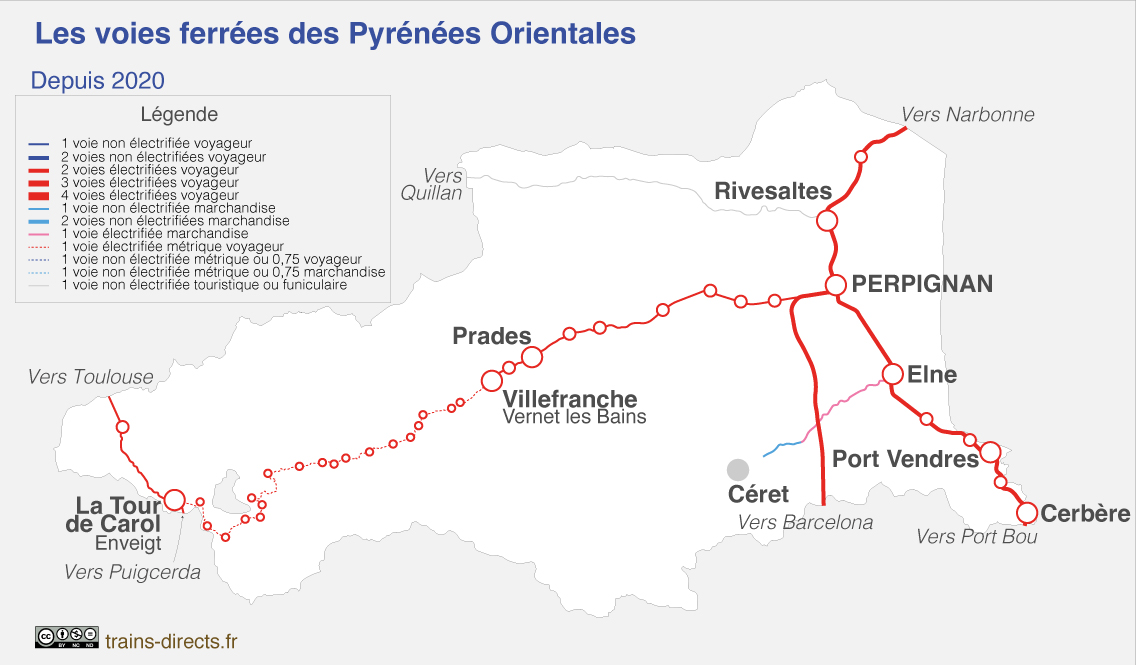 Le réseau ferroviaire des Pyrénées-Orientales se distingue par sa stabilité exceptionnelle. Depuis la création des lignes au XIXe siècle, seules deux d’entre elles ont été fermées : Elne – Arles-sur-Tech et Rivesaltes – Quillan. Ce réseau principal, aujourd’hui entièrement électrifié, a su évoluer tout en conservant sa structure initiale.
